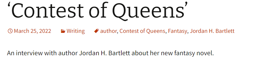 We are happy to introduce Jordan Bartlett as our Local Author Spotlight for April… A life-long lover of literature, Jordan has spent the last three years working on her first novel, Contest of Queens, to add to the world’s library. READ MORE…